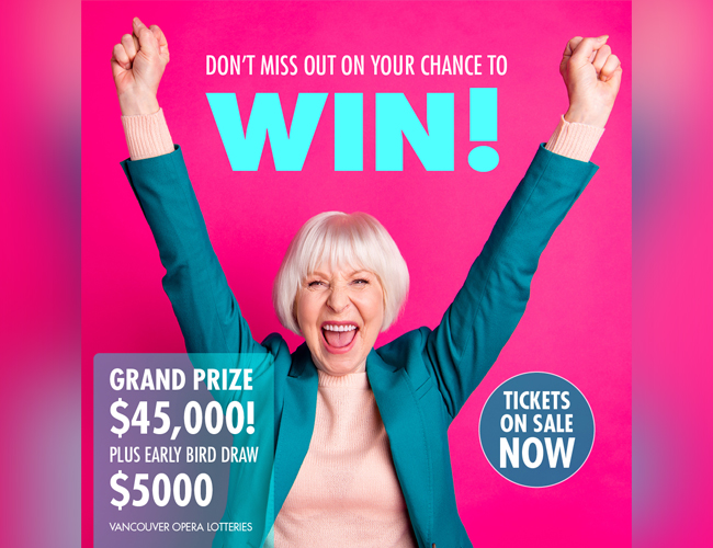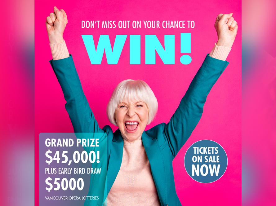 Your lottery purchase today directly supports Vancouver Opera’s artistic operations, education, and community outreach programs. You are an essential part of everything we do as we continue to engage, inspire, and entertain our communities through voice, music, and theatre. Thank you for supporting Vancouver Opera!Important dates